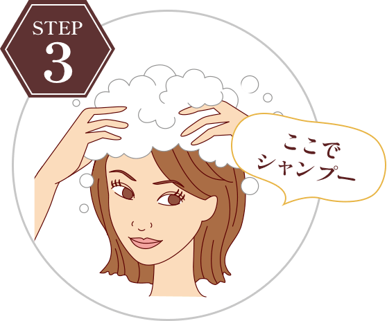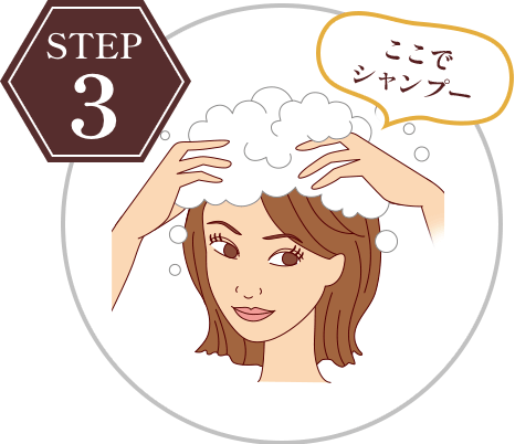 適量を髪全体につけて、よくなじませます。