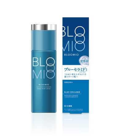 ブルーミオとは、ロート製薬の皮膚科学研究から生まれた先進のエイジングケアシリーズ。「ブルーミオ ディープモイストローション」は、肌に溶け込み、やわらかな感触に。角層内をうるおいで満たす化粧水です。