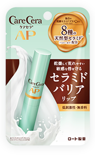 8種のセラミド(うるおい成分:セラミド1、セラミド2、セラミド3、セラミド6II、セラミドEOS、カプロオイルフィトスフィンゴシン、カプロオイルスフィンゴシン、ジヒドロキシリグノセロイルフィトスフィンゴシン(うるおい成分))を配合したリップクリームでうるおい与えるケア