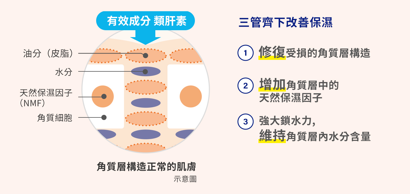 這款治療藥中含有的有效成分類肝素,能夠從3個角度提升皮膚的鎖水保濕能力,從而促進肌膚屏障功能的正常化。