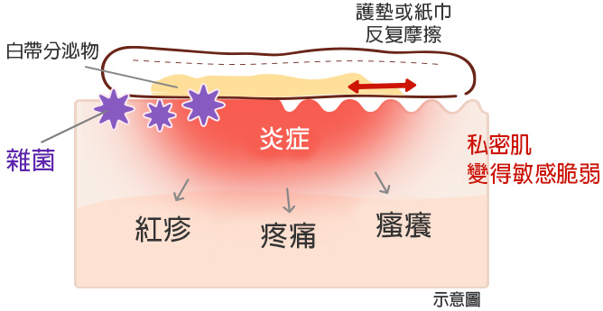 再加上不少女性會使用護墊,或是在上完廁所後用力擦拭,這些摩擦也會損傷皮膚,令私密部 位的皮膚變得更加敏感脆弱。