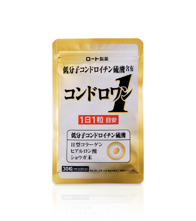 「コンドロワン」は、低分子コンドロイチン硫酸含有サプリメントです。ロート製薬独自のオリジナル素材「低分子コンドロイチン硫酸」は従来のコンドロイチン硫酸よりも14.5倍の吸収率