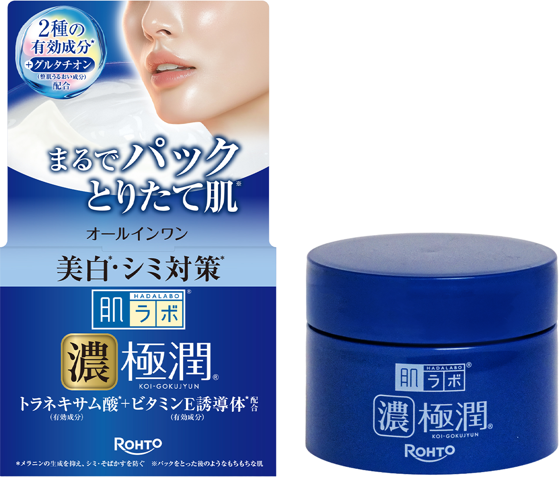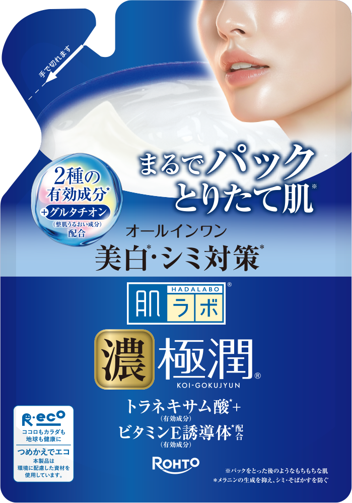トラネキサム酸(美白※1)に加え、酢酸DL-α-トコフェロール(血行促進)を新たに有効成分として配合しました。うるおいに満ちた、明るい印象の素肌を目指せるアイテムへと進化しています。 さらに、「コアリリース技術」を搭載したヒアルロン酸※2とグルタチオン※3を新配合。1つでスキンケアが完了しながらも、しっかりと満足していただける処方にこだわりました。 また、使用感についても検討を重ね、ジェルならではの伸びやすさと肌なじみを追求。ぴたっと密着する、膜感のある心地よい保湿感を感じていただけます。