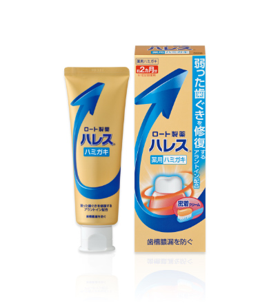 「ハレス ハミガキ」はアラントインを配合し、弱ってきた歯ぐき細胞を活性化して組織修復することで本来の強い歯ぐきづくりをサポートします。また、血行を促し、炎症を抑え、殺菌する薬用成分が歯槽膿漏を予防。