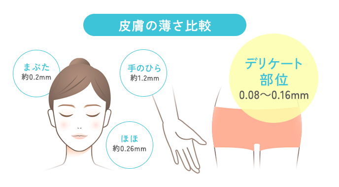 デリケート部位は、顔よりも角層が薄く、刺激を受けやすい。