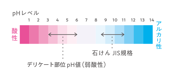 デリケート部位はpH値が5前後と弱酸性で敏感な部位。pHや洗浄力で肌に合わないものを使うと、しみるように感じることや乾燥などのトラブルが起きることも。