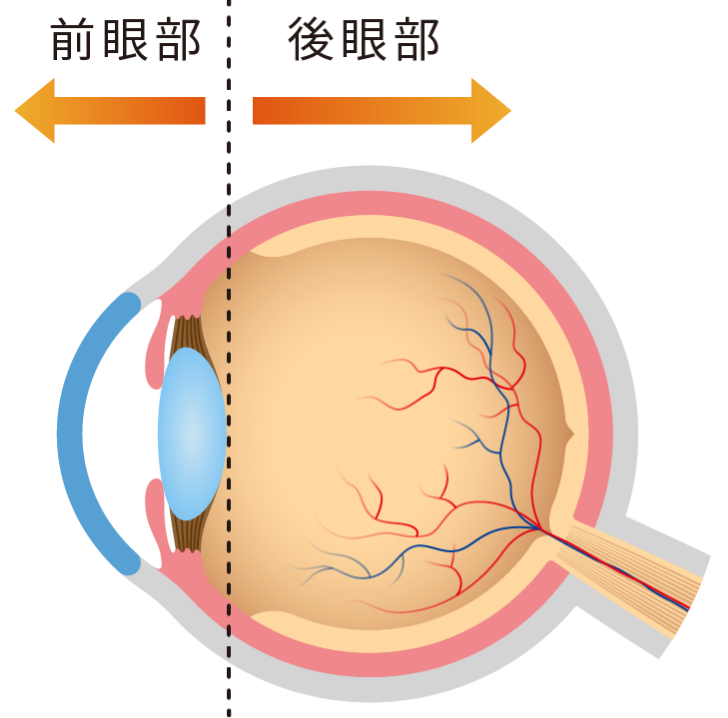 私たちの眼の奥側(後眼部)には、たくさんの血管が分布しています