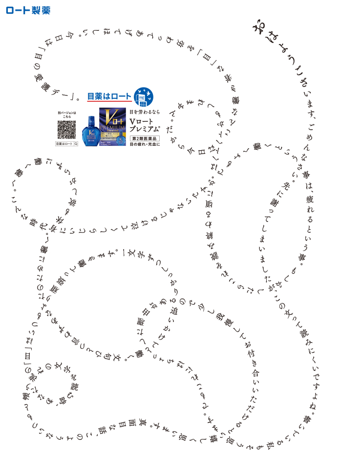 10月10日は「目の愛護デー」。 大切な「目」にどうしても注目して欲しくて、 こんな新聞広告を3種類も作ってしまいました。