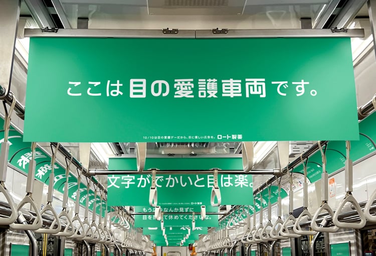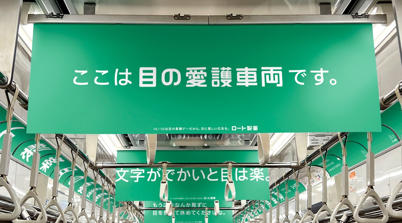 10/10の目の愛護デーに合わせて 目に優しい広告で電車をジャックしました。 10/10の目の愛護デーに合わせて 目に優しい広告で電車をジャックしました。