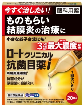「腫れて痛い」「かゆい」などの、つらいものもらい(麦粒腫)や、「白目が充血し、目やにが多く出る」といった症状の結膜炎を治す、1回使い切りタイプの治療用点眼薬です。