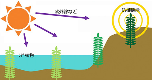 そこで自ら紫外線に対する防御の仕組みを生み出し獲得していったのです。