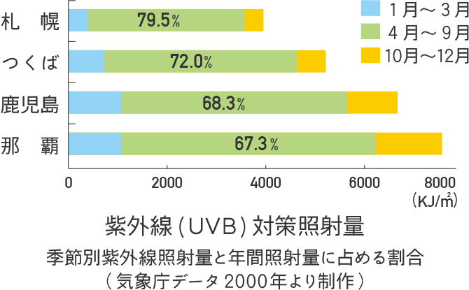 肌を傷つける原因である「紫外線」は、地域や季節などにより、その強さが異なります。