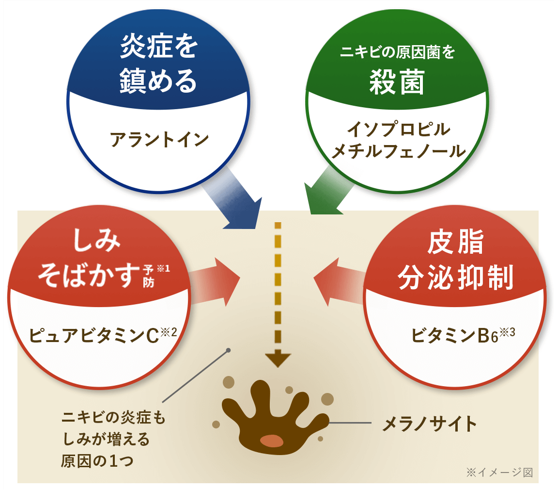 いつものステップに「メラノCCシリーズ」をプラスするだけで、気になる部分を集中ケア。 使用タイミング: