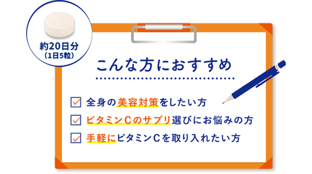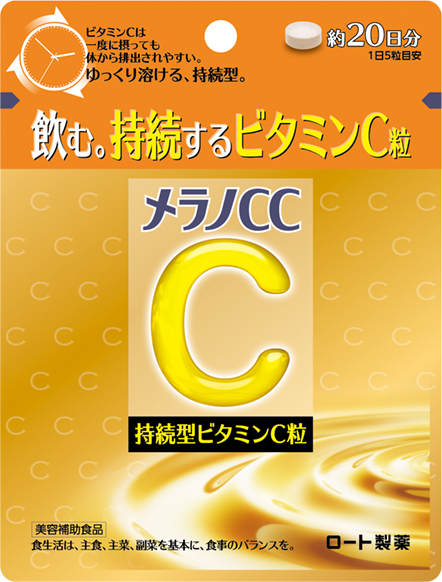 ビタミンCは一度にたくさん摂取しても吸収されずに体外に排出されてしまいます※2。メラノCCはたっぷりビタミンC配合の、持続型サプリ。毎日の摂取がオススメです。