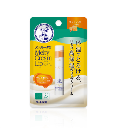 「メンソレータム メルティクリームリップ(リッチハニー)」は、くちびるや空気中の水分と反応してうるおいを抱え込み、クリームに変わる「モイストバンク技術」を採用。まるでクリームがとろけるような、これまでにない、やわらかくなめらかな塗り心地。ひと塗りすれば、体温でとろけて唇へなじみ、最上級