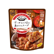 トマトの酸味と炒め玉ねぎの甘さが調和。オーガニック豆のスープ