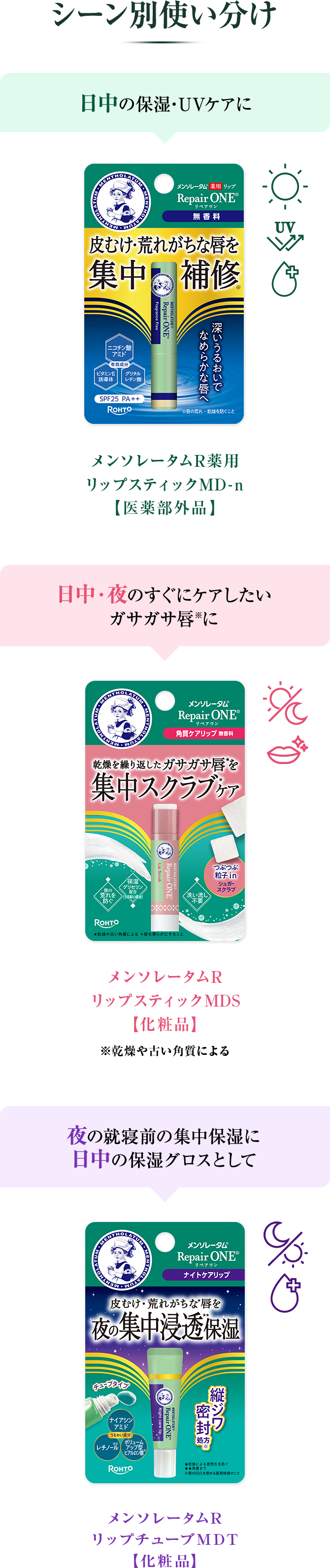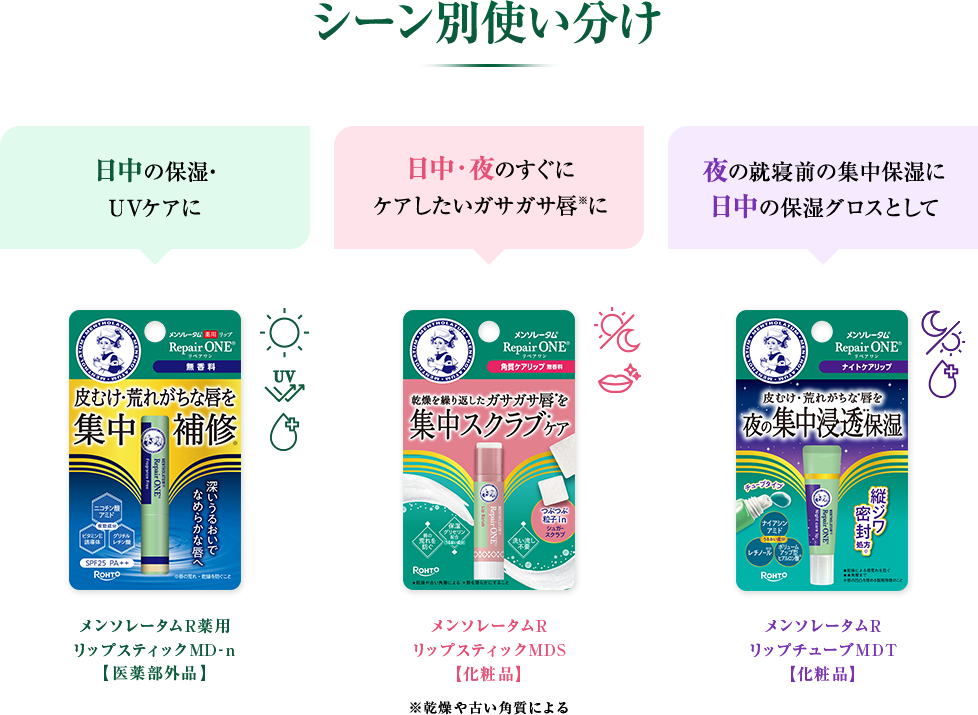 皮むけ・乾燥による唇あれを防ぎ、夜塗って唇を保湿パック