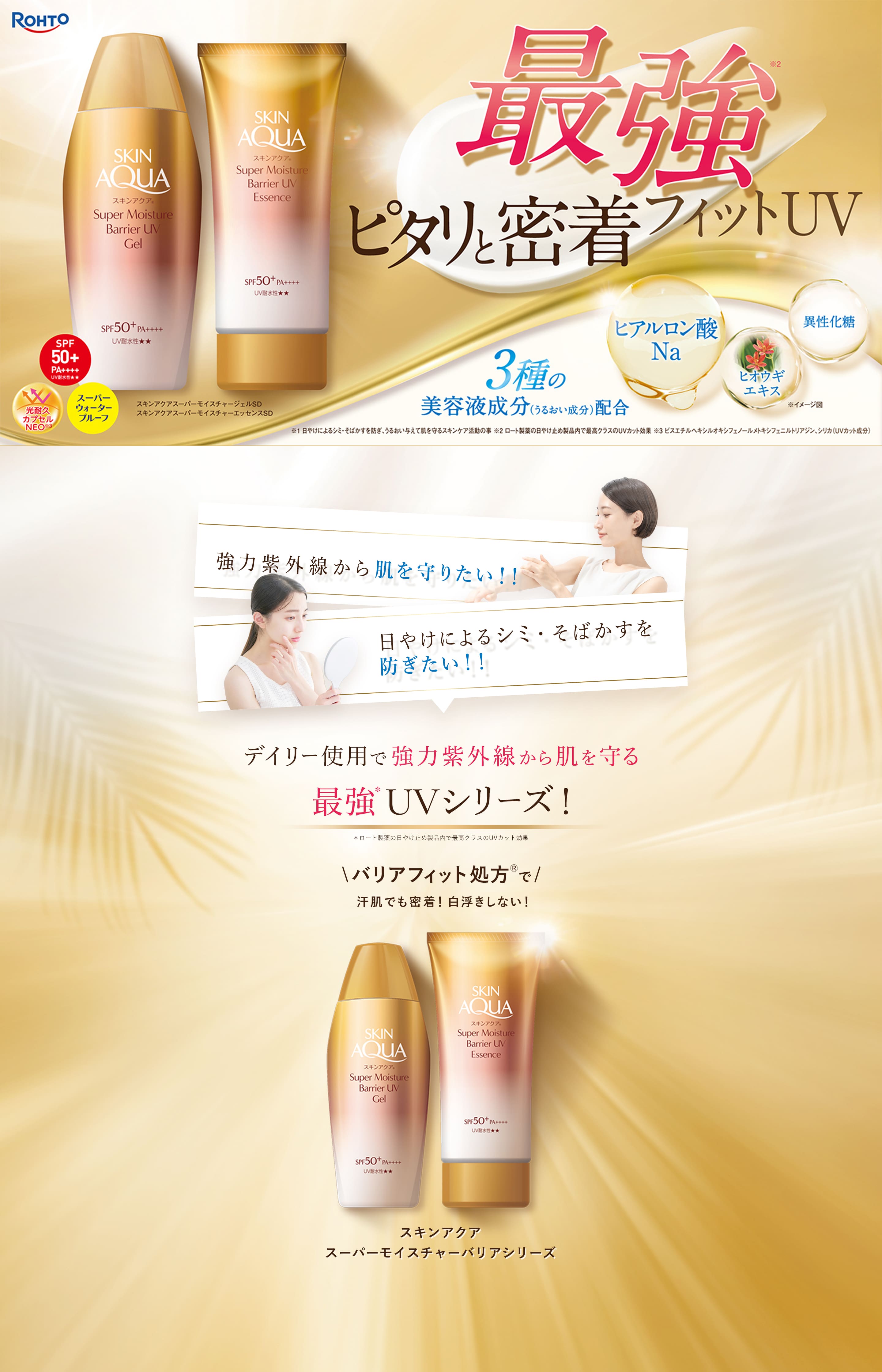 気持ちよいうるおいUV膜が肌表面に密着し、強力紫外線から守ります。