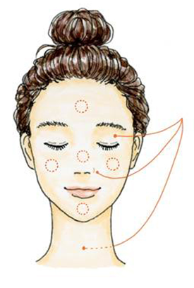 ぬる場所(額、鼻の上、小鼻、両頬、
